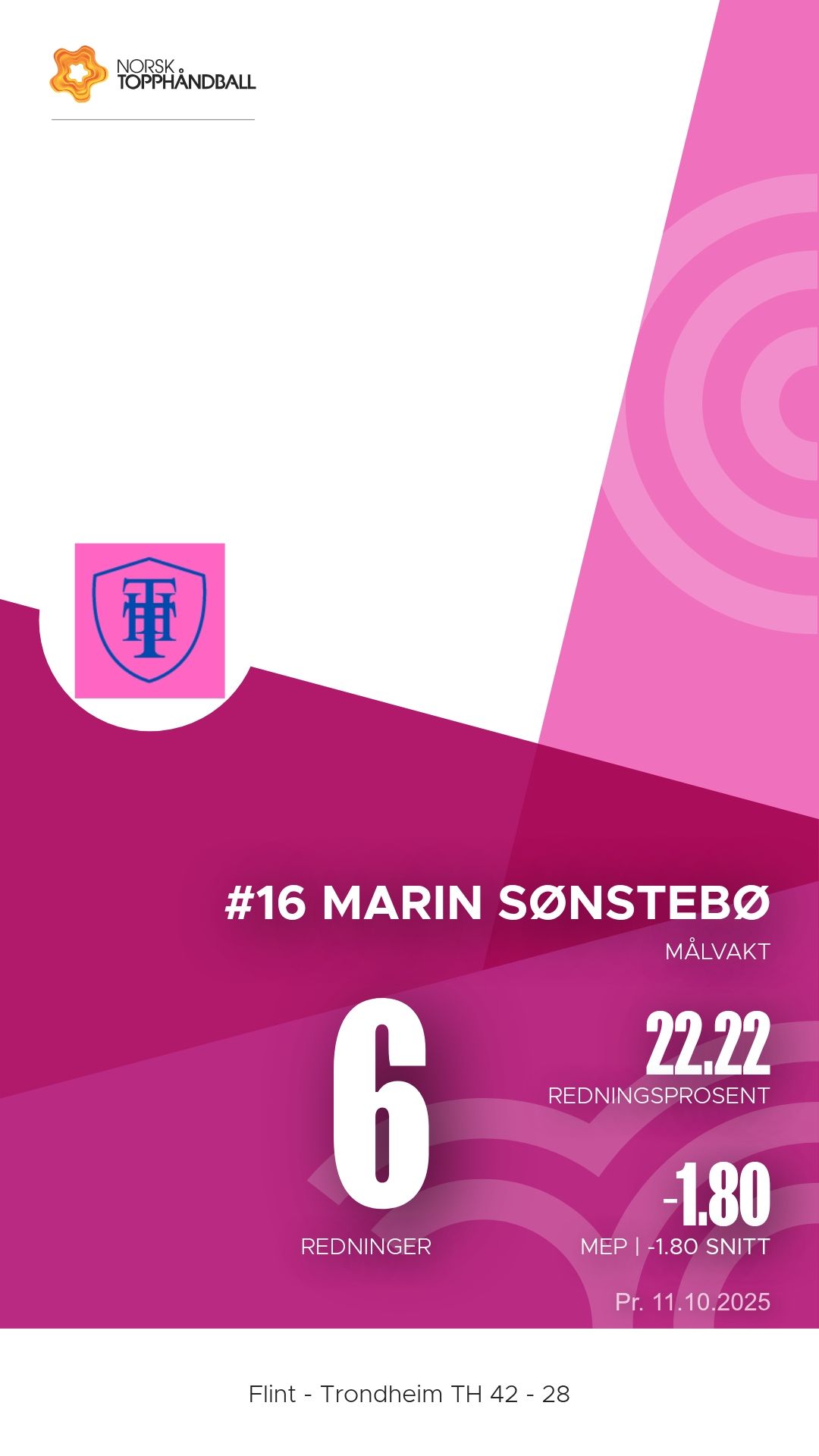 Lørdag 11. oktober 2025 møttes Flint Tønsberg og Trondheim Topphåndballklubb i REMA 1000 Arena til kamp i 1. divisjon sesongen 2025–2026. Hjemmelaget vant til slutt 42–28, men bortelaget fra Trondheim viste glimt av kvalitet og samspill som lover godt for fortsettelsen.