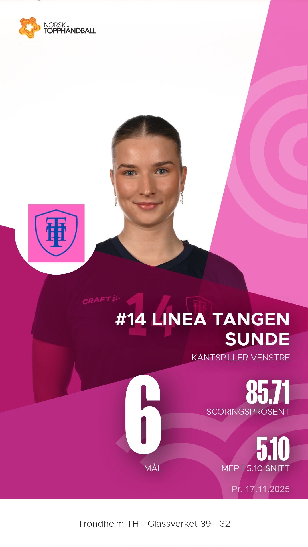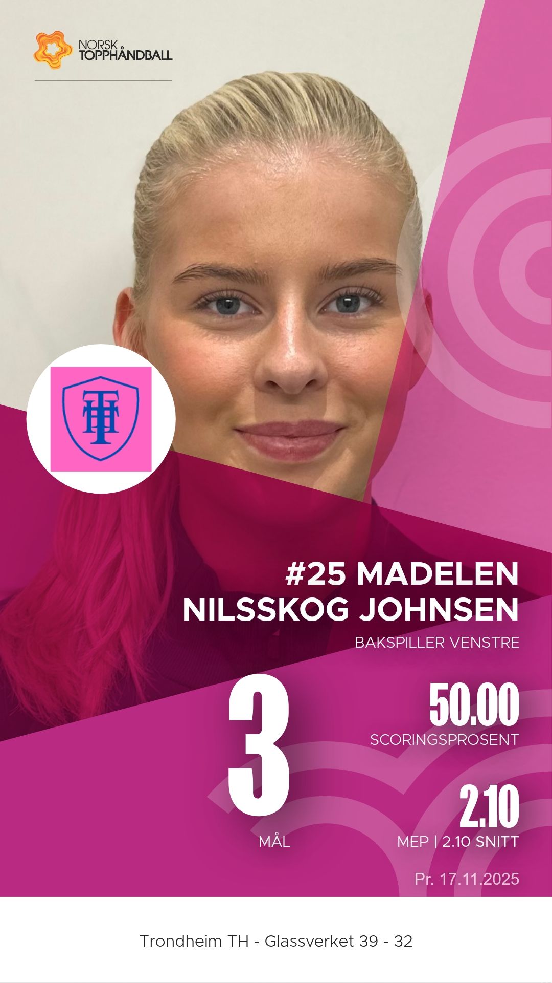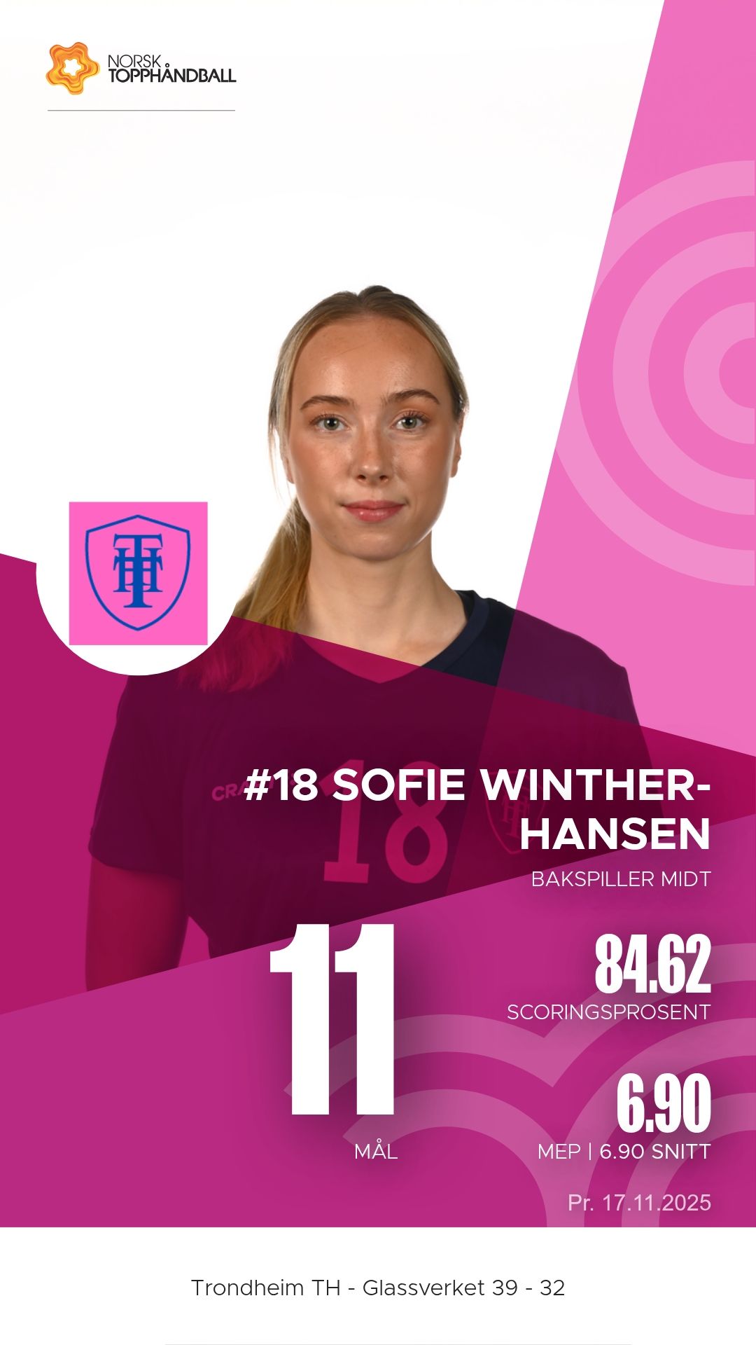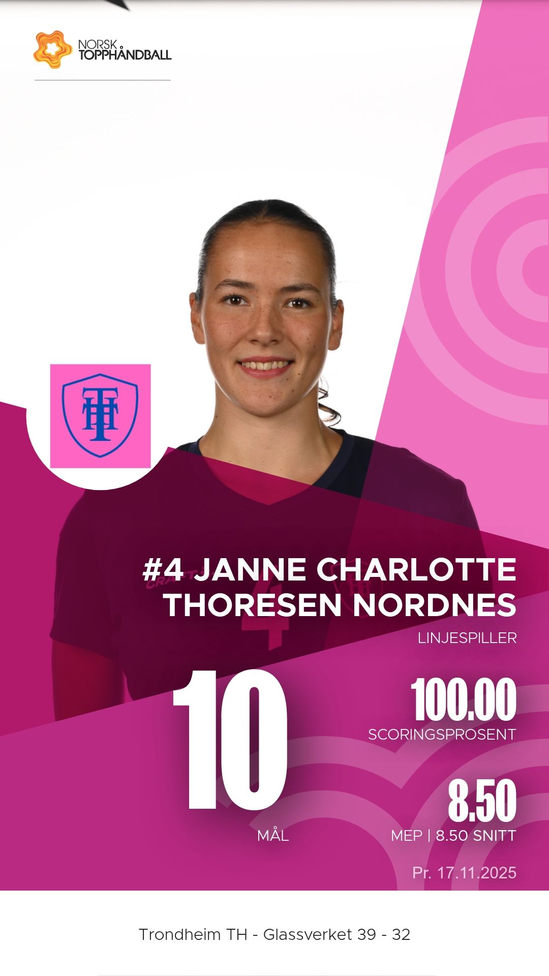 Trondheim Topphåndballklubb tok imot Glassverket til kamp i 1. divisjon sesongen 2025–2026 i Trondheim Spektrum D2+D3 søndag 16. november. Etter en tett og målrik kamp kunne hjemmelaget til slutt juble for en sterk 39–32-seier, etter å ha ligget under 12–16 ved pause.