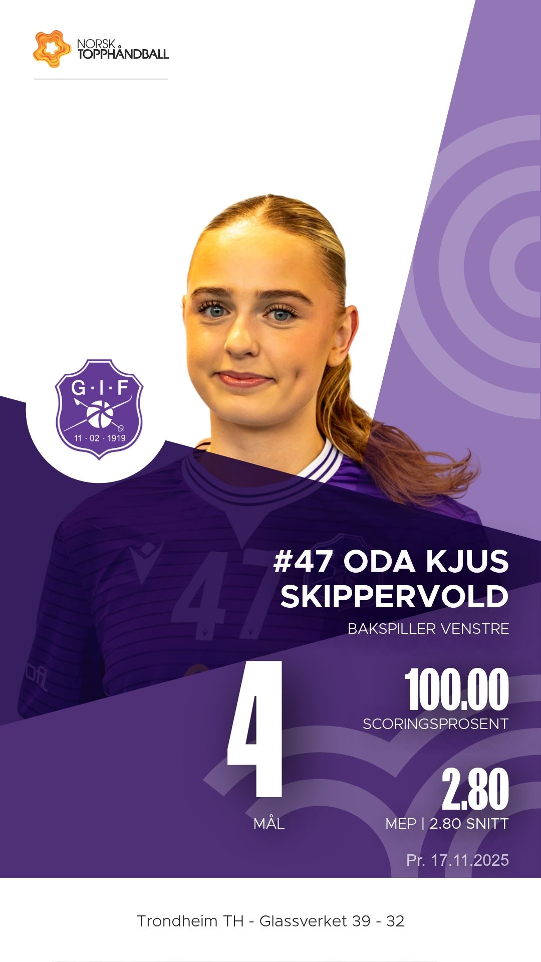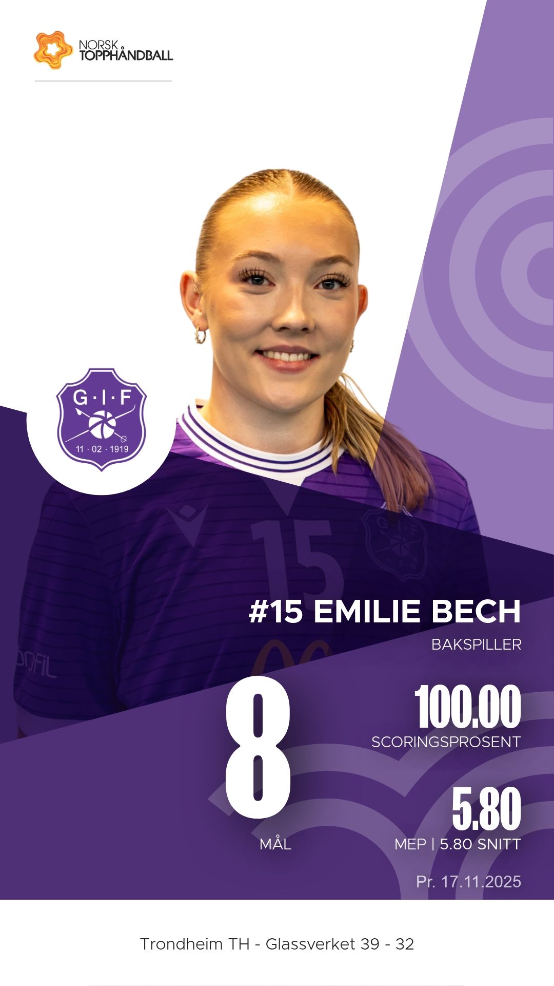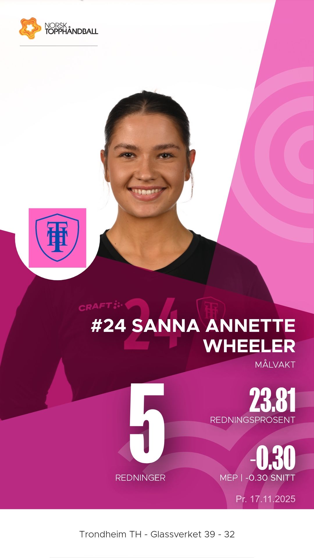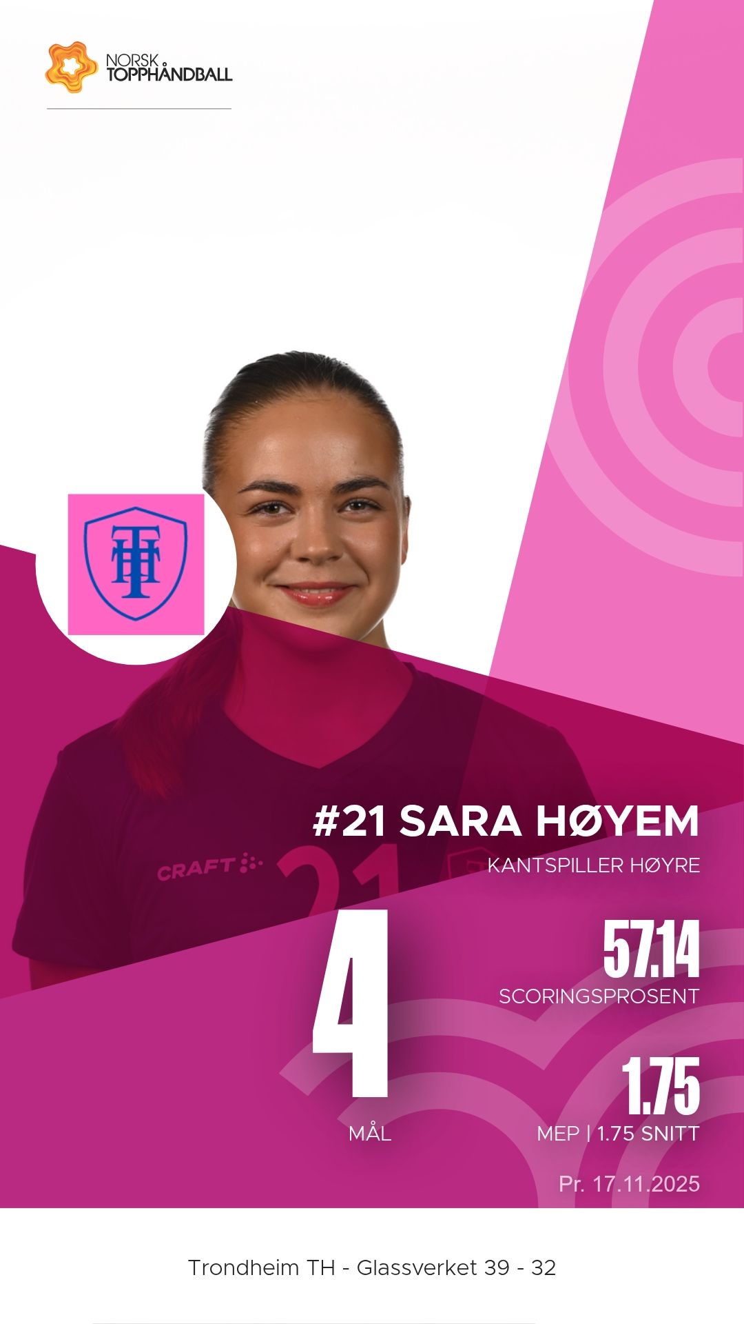 Trondheim Topphåndballklubb tok imot Glassverket til kamp i 1. divisjon sesongen 2025–2026 i Trondheim Spektrum D2+D3 søndag 16. november. Etter en tett og målrik kamp kunne hjemmelaget til slutt juble for en sterk 39–32-seier, etter å ha ligget under 12–16 ved pause.